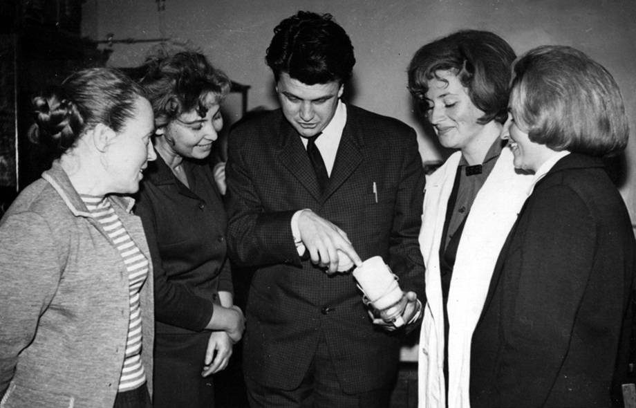 Boris B. Damaskin surrounded by electrochemical ladies: (from left to right) Nina V. Fedorovich, Nadezhda S. Polyanovskaya, Ninel’ I. Palagina, and Rimma V. Ivanova.